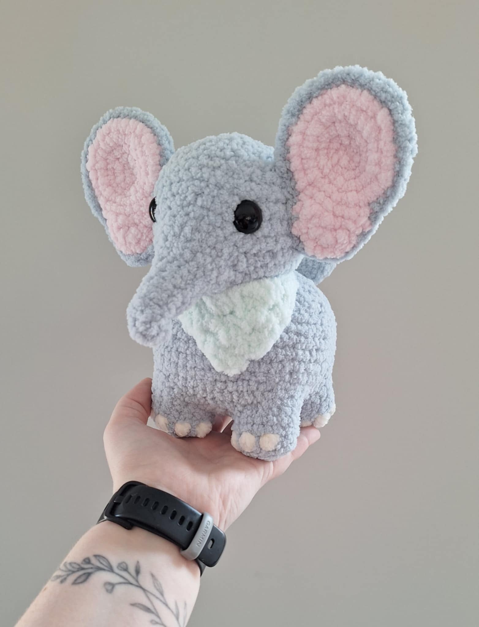 Deze gehaakte olifant is niet zomaar een knuffel, maar een trouwe metgezel vol charme en karakter. Met haar grote flaporen, ronde buikje en vriendelijke uitstraling is ze perfect om mee te knuffelen, te spelen of als decoratie in de kinderkamer. Elk exemplaar is met de hand gehaakt uit zachte katoen en gevuld met een pluizige vulling, wat zorgt voor een heerlijk aaibaar en veilig vriendje.