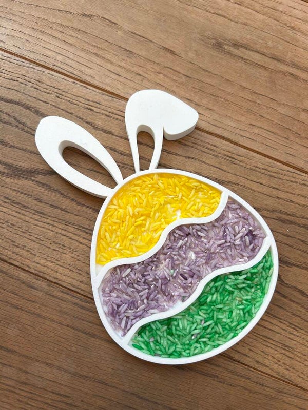 Elke oortje, pootje en contour is zorgvuldig vormgegeven zodat kleine handjes er moeiteloos mee aan de slag kunnen. Vul de tray met speelrijst, waterparels, kralen of natuurlijke materialen en laat kinderen hun zintuigen op een zachte manier prikkelen. De konijnvorm maakt het extra herkenbaar en aantrekkelijk en zorgt meteen voor een rustige, vriendelijke sfeer.