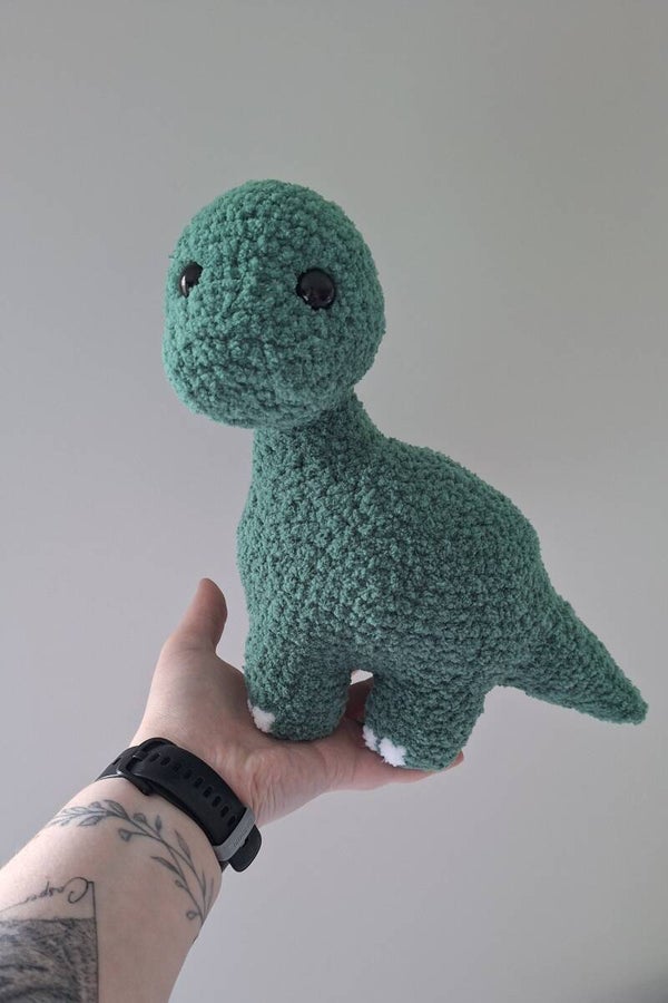 Deze gehaakte dino is niet alleen een knuffel, maar een echte kameraad voor kleine avonturiers. Met zijn vriendelijke ogen, zachte stekels en aaibare lijfje is hij klaar om overal mee naartoe te gaan: van bedtijd tot speeluurtjes, en van logeerpartijtjes tot geheime dinolandmissies.