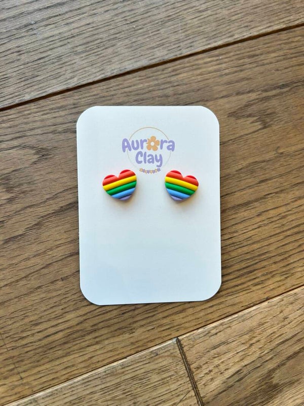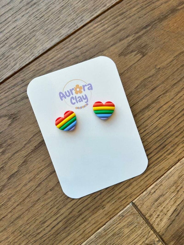 Draag de liefde in al haar vormen met deze handgemaakte regenboog hartjes oorstekers. Elk paar is uniek, zorgvuldig geboetseerd uit polymeerklei en afgewerkt met een beschermende glanslaag. Deze kleurrijke studs zijn een symbool van trots, liefde, gelijkheid en pure vrolijkheid.