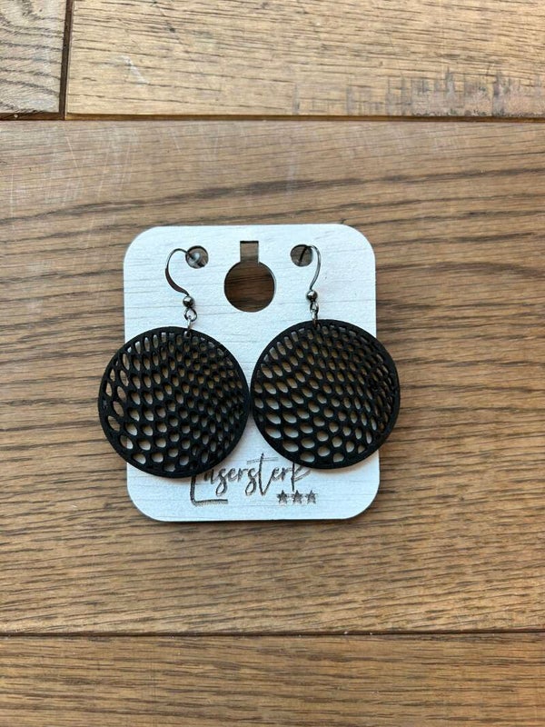 Deze handgemaakte oorbellen zijn vervaardigd uit duurzaam hout en laser-gesneden tot een perfect symmetrisch design met een open structuur. Het patroon van subtiele openingen doet denken aan bijenraten of waterdruppels natuurlijk en verfijnd, met een moderne twist.