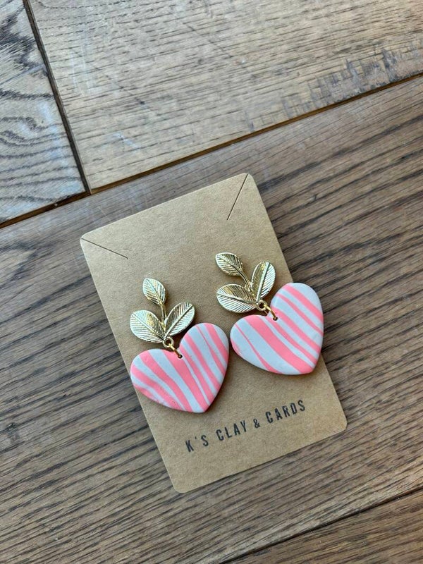 Oorbellen Hartje roze gestreept