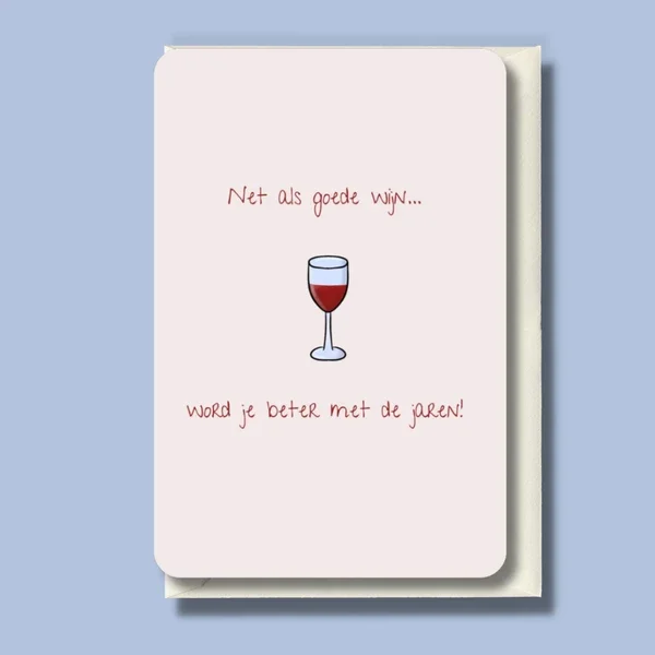 Deze kaart zegt het zoals het is: jij wordt elk jaar beter, net als een goed glas wijn.