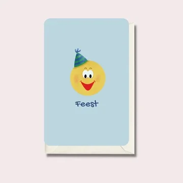 Zin in een feestje? Deze vrolijke smiley met feesthoedje zegt alles wat je nodig hebt: FEEST!