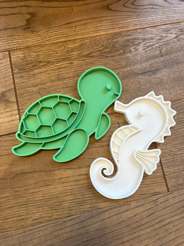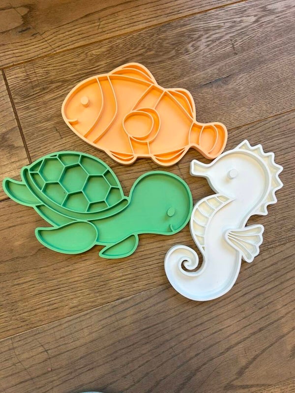 Duik in een wereld vol speelplezier met deze vrolijke set van 4 sensorische vultrays in de vorm van zeedieren. Elke tray heeft een eigen karakter en nodigt uit tot urenlang ontdekken, scheppen, vullen en voelen. Ideaal voor kleine handjes die graag creatief bezig zijn.