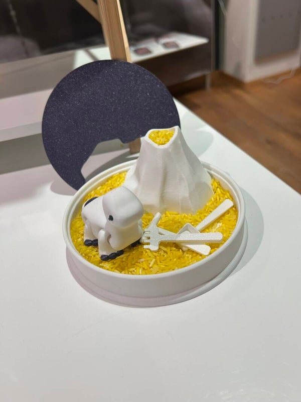 een vulkaan waarin je de rijst kunt laten stromen