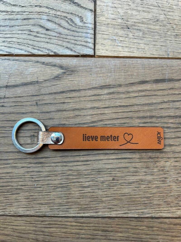 Op zoek naar een klein maar waardevol cadeau voor die ene bijzondere meter? Deze stijlvolle sleutelhanger van echt leder zegt het simpelweg zoals het is: lieve meter, met een hartje als extra knipoog.
