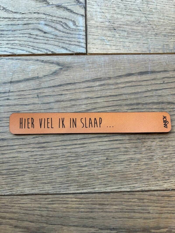 Voor de dromers, de nachtlezers en de boekenwurmen die nooit weten waar ze gebleven zijn... Deze lederen bladwijzer is de perfecte metgezel voor je volgende hoofdstuk. Gemaakt uit stevig, kwalitatief leder en gegraveerd met een knipoog: Hier viel ik in slaap...