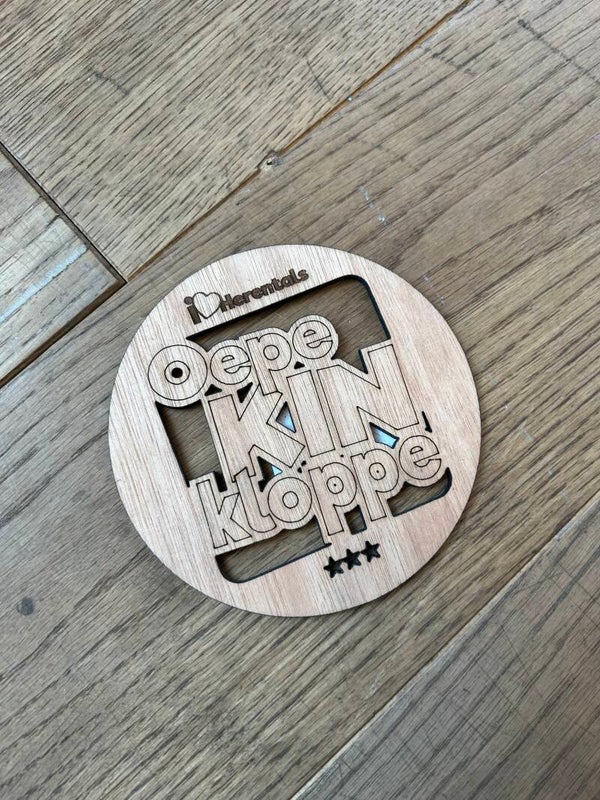 Deze houten onderleggers zijn een ode aan het Kempisch dialect – recht uit ons hart en vol karakter. Perfect om je koffietas op te zetten met een knipoog en een lach.