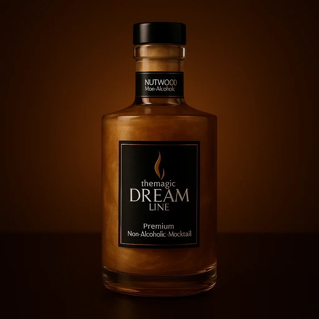 Laat je betoveren door Nutwood 0% een sprankelende mocktail met een zachte nootachtige toets, perfect in balans met warme kruidige ondertonen. Deze luxueuze alcoholvrije drank uit de Dreamline collectie bevat een subtiele glitter die bij elke beweging twinkelt in het licht alsof je een beetje magie in je glas schenkt.