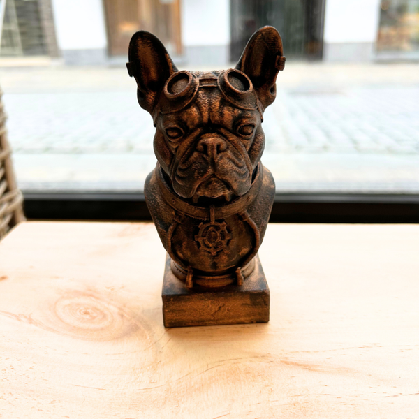 Met z’n coole bril, gedetailleerde harnas en serieuze blik lijkt hij zo uit een avonturenfilm te stappen. Dit 3D-geprinte beeldje is perfect als cadeau voor elke hondenliefhebber of steampunkfan.