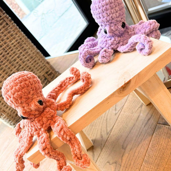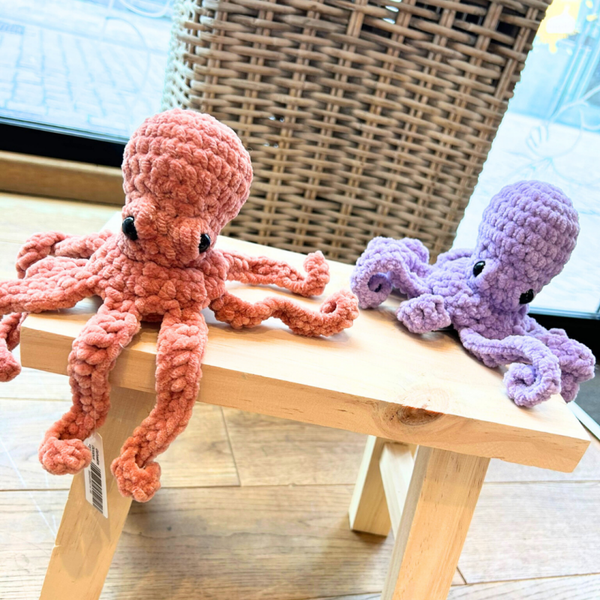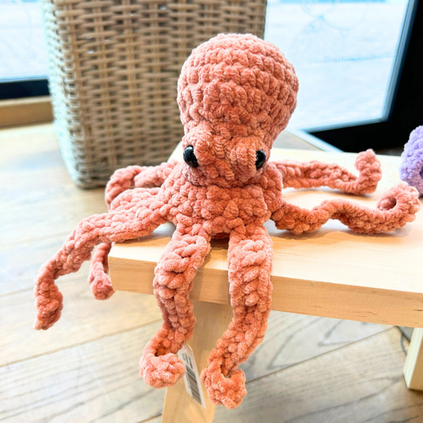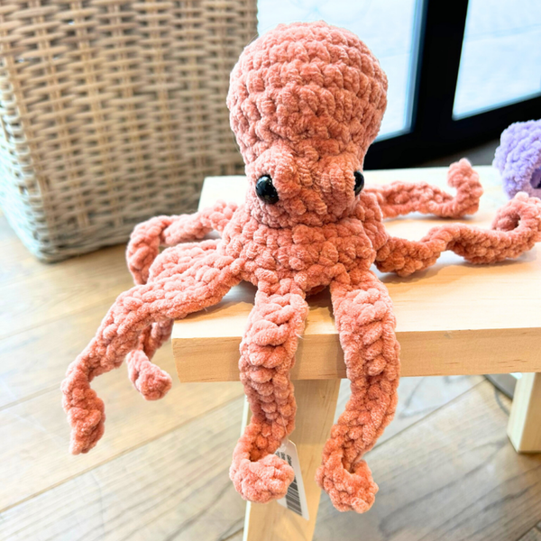 Deze mini-octopus verovert harten met elke tentakel! Met z’n kronkelige pootjes, bolle oogjes en zachte chenille-textuur is hij een knuffelvriendje voor jong en oud. Verkrijgbaar in warme, zachte tinten zoals terracotta en lila.