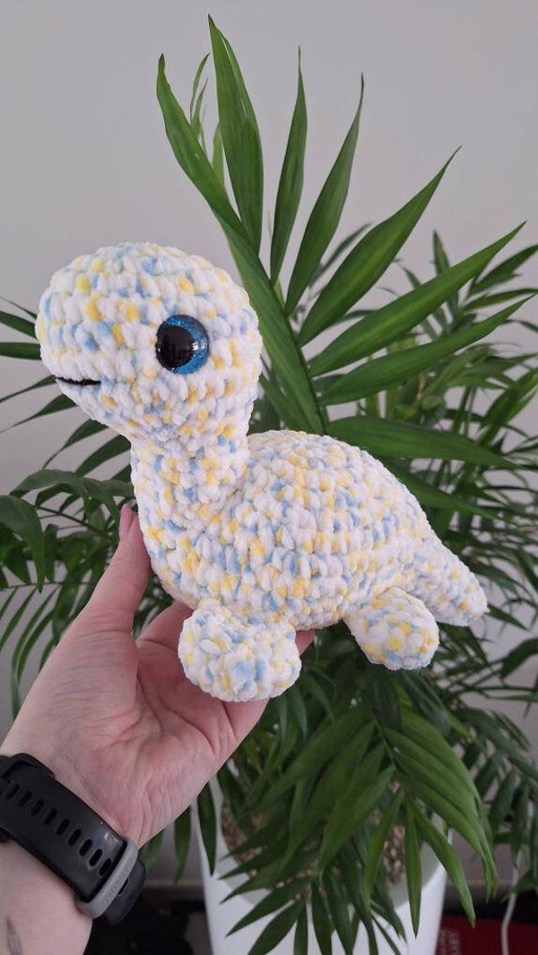Laat je hart smelten met deze superschattige gehaakte Nessie! Elk exemplaar wordt liefdevol met de hand gehaakt, waardoor elk knuffeltje uniek is. De zachte structuur en mooie kleuren maken van Nessie niet alleen een fijne knuffel, maar ook een prachtig decoratiestuk in elke kinderkamer.