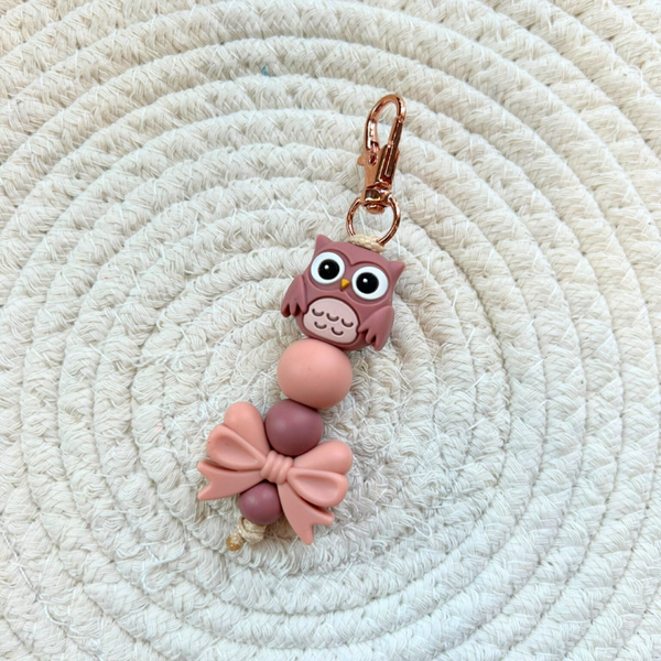 Deze roze uil sleutelhanger is een echte schat!