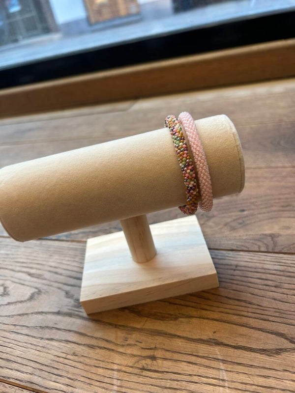 Zoet, speels en onweerstaanbaar! Deze duo-set bestaat uit een zachte bubblegumroze armband en een kleurrijke confetti-variant die doet denken aan suikerspinnen en feestjes.