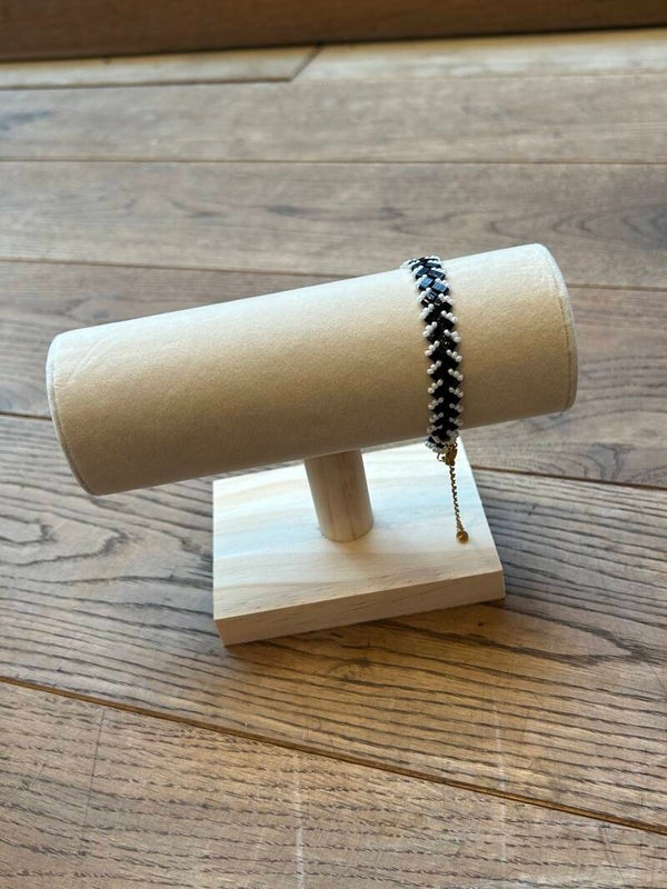 Deze elegante armband is gemaakt met Tila kralen in zwart-wit patroon en afgewerkt met fijne details. De geometrische structuur geeft een moderne uitstraling, terwijl de afwisseling van kleuren zorgt voor een subtiele eyecatcher.