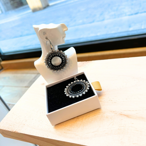 Voeg een vleugje elegantie toe aan je look met deze prachtige Donatsu oorbellen in zwart.