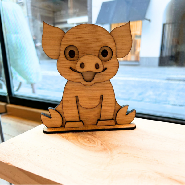 Deze vrolijke houten varkenshouder is de perfecte plek om je bril veilig op te bergen.
