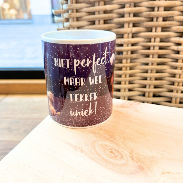 De warme kleuren en gezellige tekening maken dit een perfecte mok voor koude dagen, ideaal om te vullen met je favoriete koffie, thee of warme chocolademelk.
