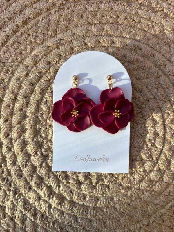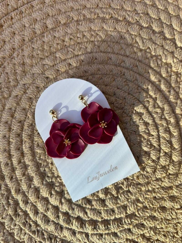 Oorbellen Bloem Bordeaux