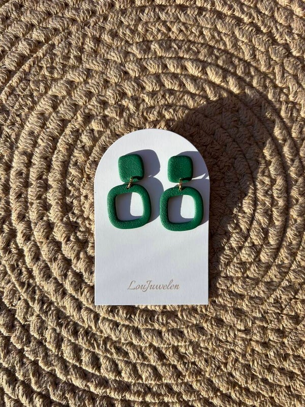 De Oorbellen Groen Vierkante Hangers zijn een krachtig statement in vorm en kleur. Met hun geometrische silhouet en diepe groene tint stralen ze rust, stijl en karakter uit. Een handgemaakt ontwerp dat minimalisme combineert met een artistieke flair.
