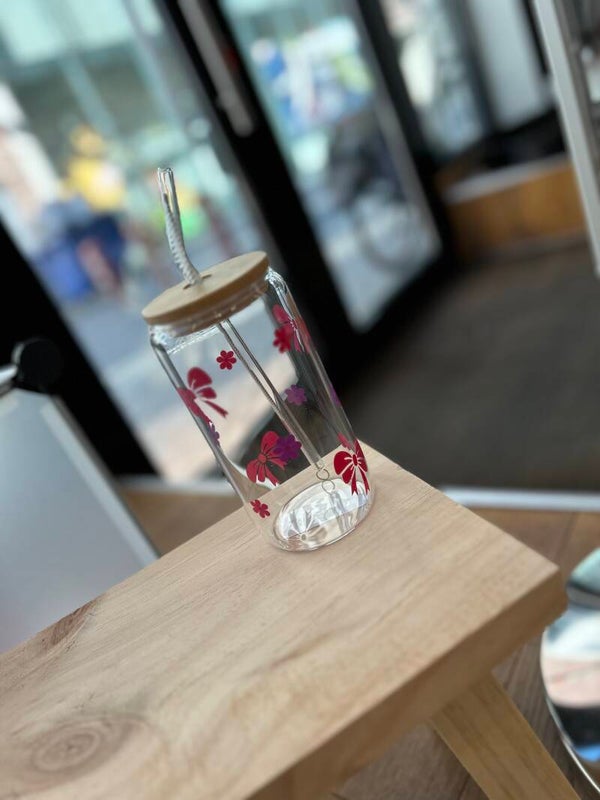 Glazen drinkbeker roze strikjes